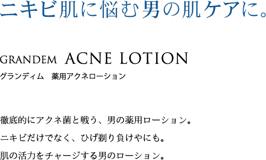 ニキビに悩む男性のために、 徹底的にアクネ菌と戦う、男の薬用ローションが新登場。