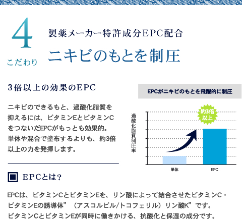 さらに製薬メーカー特許成分のEPCがニキビのもとを制圧。